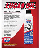 Lucas Non-Chlorinated Brake Parts Cleaner is manufactured with the highest quality components to provide excellent performance without leaving any residue. It effectively removes brake fluid, grease, brake dust, and other contaminants from brake linings, pads, cylinders, springs and drums. Professional strength and powerful spray pattern improves performance of the product. For use on all ABS, disc and drum brakes. Quiets noise associated with excessive brake dust.